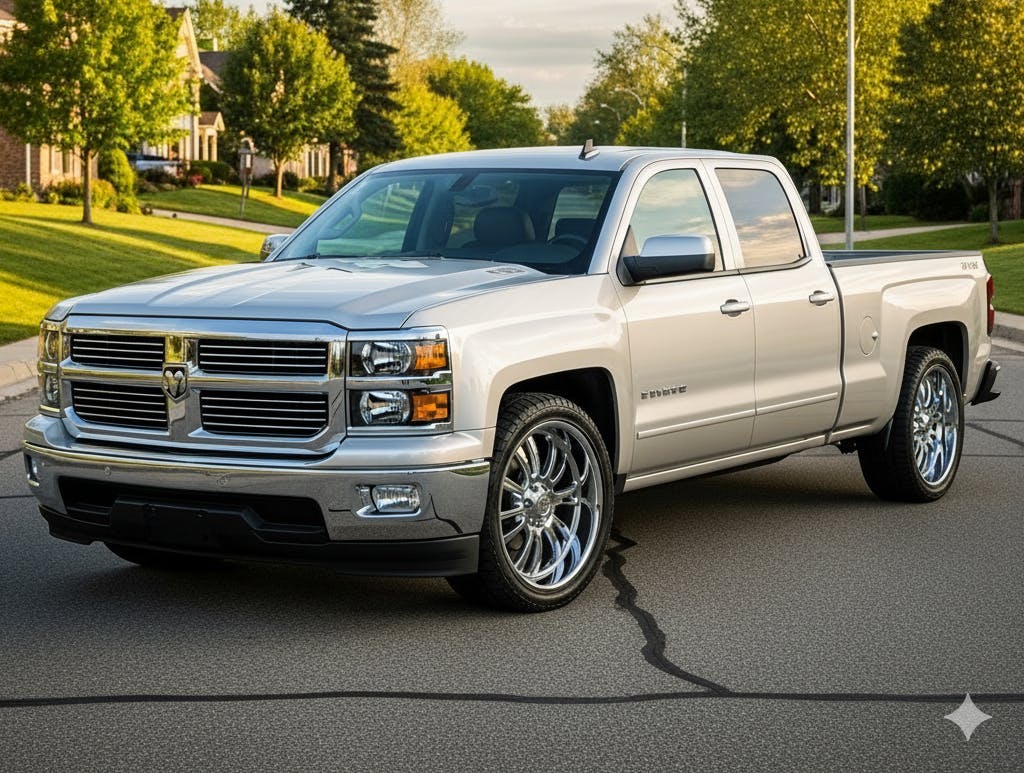« Ram et Chevy s’associent pour un nouveau pick-up léger qui vise à renverser le F-150 pour la première fois depuis des décennies. Mais, en tant que hochement de tête effronté à travers la ville aux gens de Ford, le nouveau camion ne peut être eu que d’une seule couleur: le Silverramo. » – Nathan Petroelje